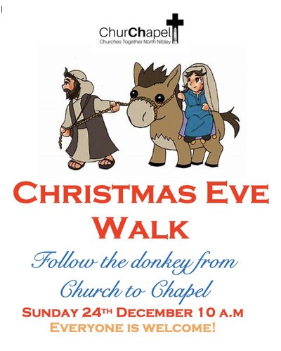 The long held practise of walking between the Church and the Chapel on Christmas Eve. Join us at 10 am at St. Martins to process to the Chapel for a family Service and seasonal refreshments. All are welcome.