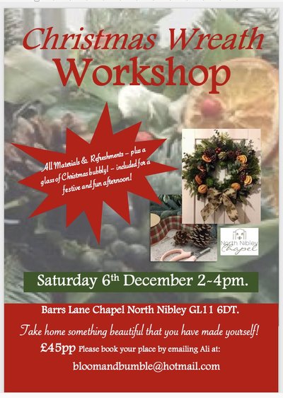 A lovely opportunity to learn how to make your own unique Christmas wreath. A wealth of colourful materials, guidance - and snacks and conviviality - few better ways of spending a dismal winter afternoon! All welcome.
