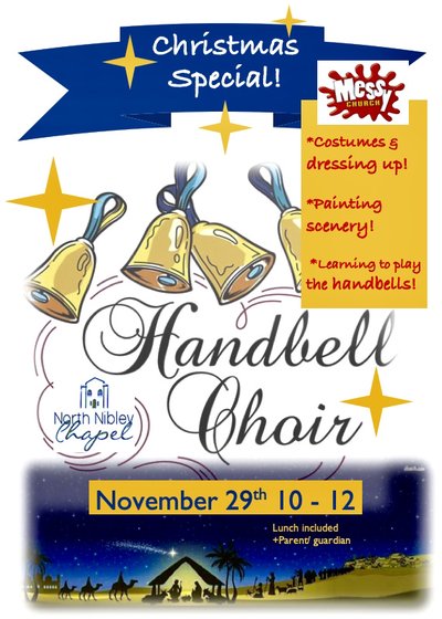 This Messy Church will prove to be great fun as we practise with hand bells, work out costumes and scenery for the up coming Living Crib at Christmas - so come along and be part of the fun!